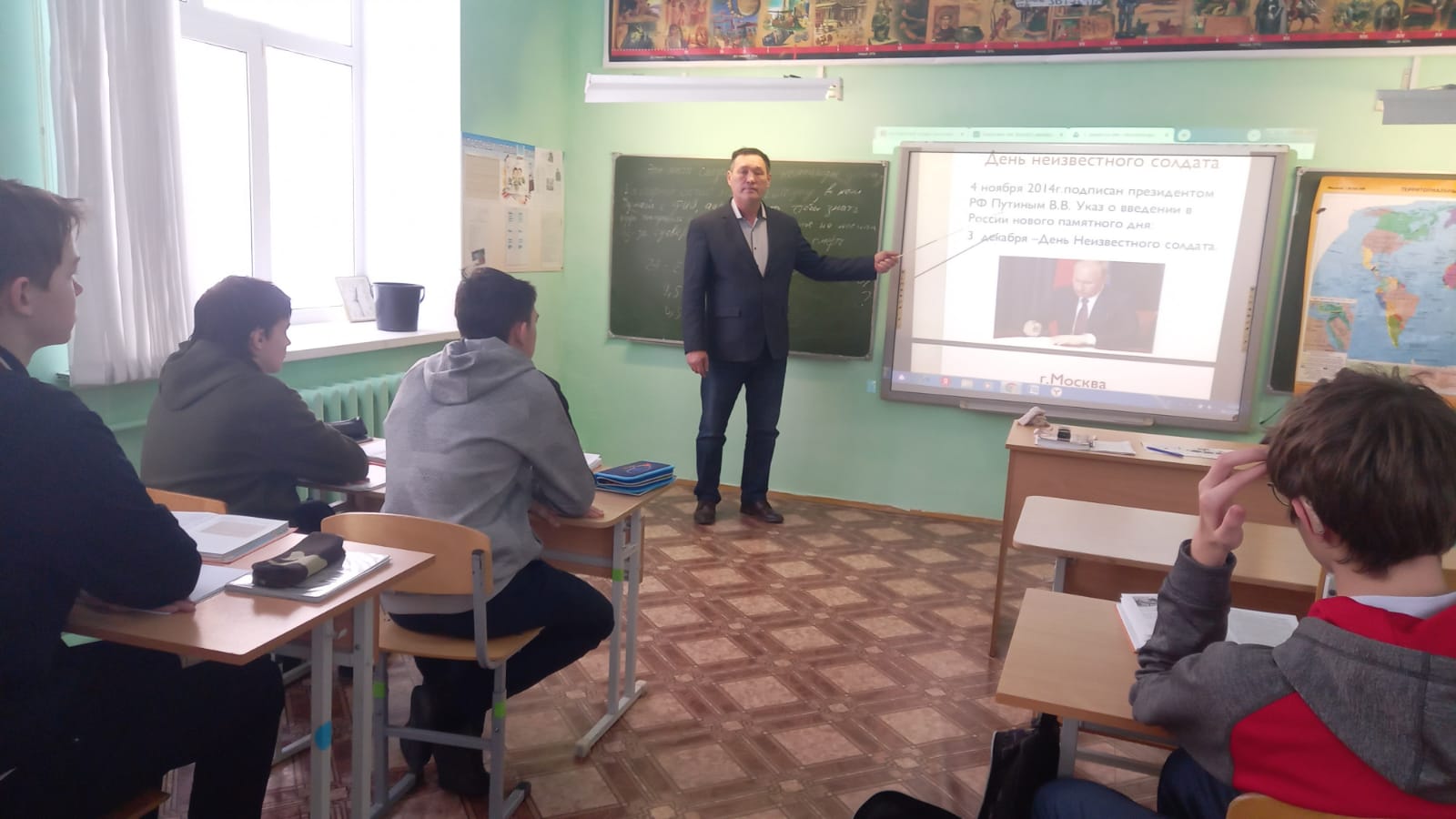 6.12.2022 в ГБОУ УКШИ № 30 для глухих и слабослышащих обучающихся прошли открытые уроки, посвященные «Дню неизвестного солдата», который отмечается в России 3 декабря. На уроке истории Баязитов Н.Ж. рассказал обучающимся 10 классов о героических подвигах солдат во время ВОВ и о тех, кто не смог найти дорогу домой. На уроке географии учитель Сайсанова Ю.А.. географически отметила регионы, где есть места захоронения, солдат без вести пропавших в годы ВОВ. Данные уроки формируют у обучающихся патриотическое воспитание, стремление к изучению истории подвигов и героического прошлого родины.