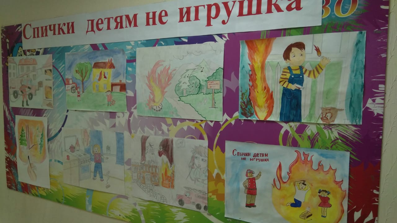 В фойе школы-интернат №30 оформлена выставка рисунков обучающихся «Спички детям не игрушка».